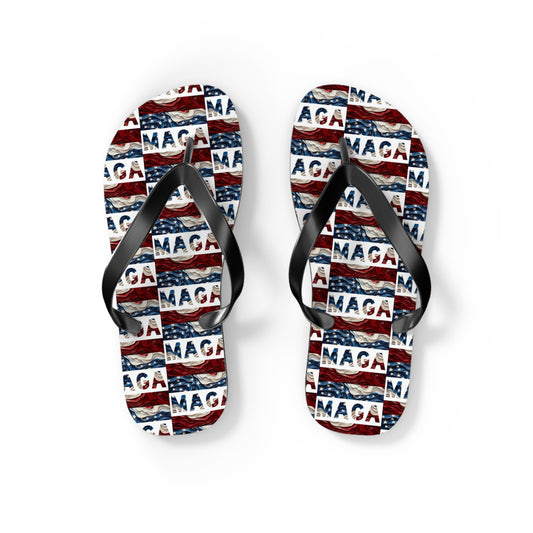 • MAGA Red White and blue Comfy Summer Beach Unisex Flip Flops Trump