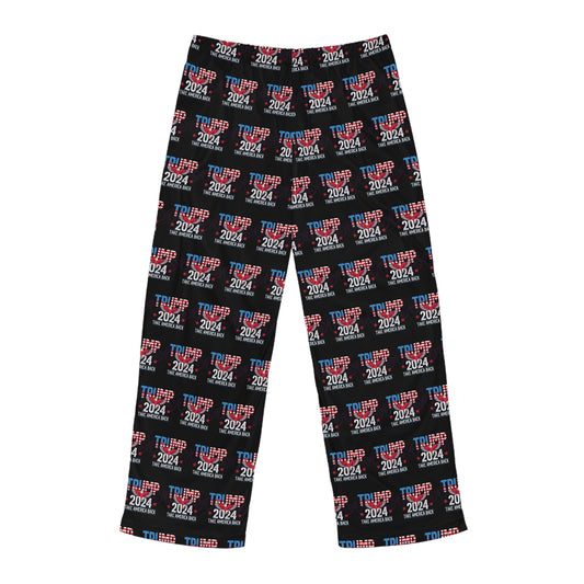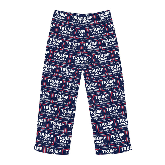 Trump Take America Back 2024 MAGA Drawstring Polyester Made in U.S.A. Men's Pajama Pants (AOP)