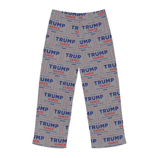 Trump Take America Back Grey Drawstring Polyester Made in U.S.A. Men's Pajama Pants (AOP)