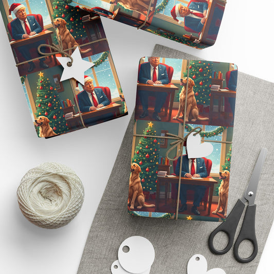 Trump Santa with Dog Christmas Gift Present Wrapping Papers