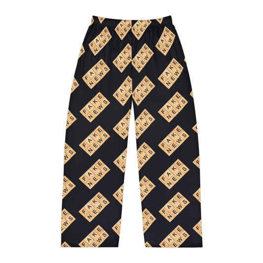 Fake News Scrabble Tiles Wooden Black Men's Polyester Lounge Comfy Pajama Pants