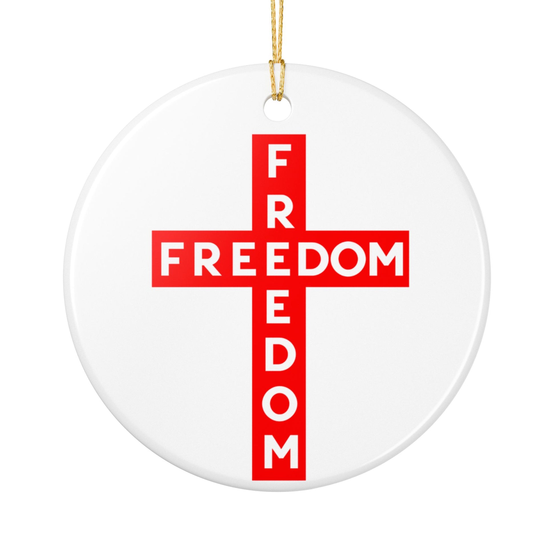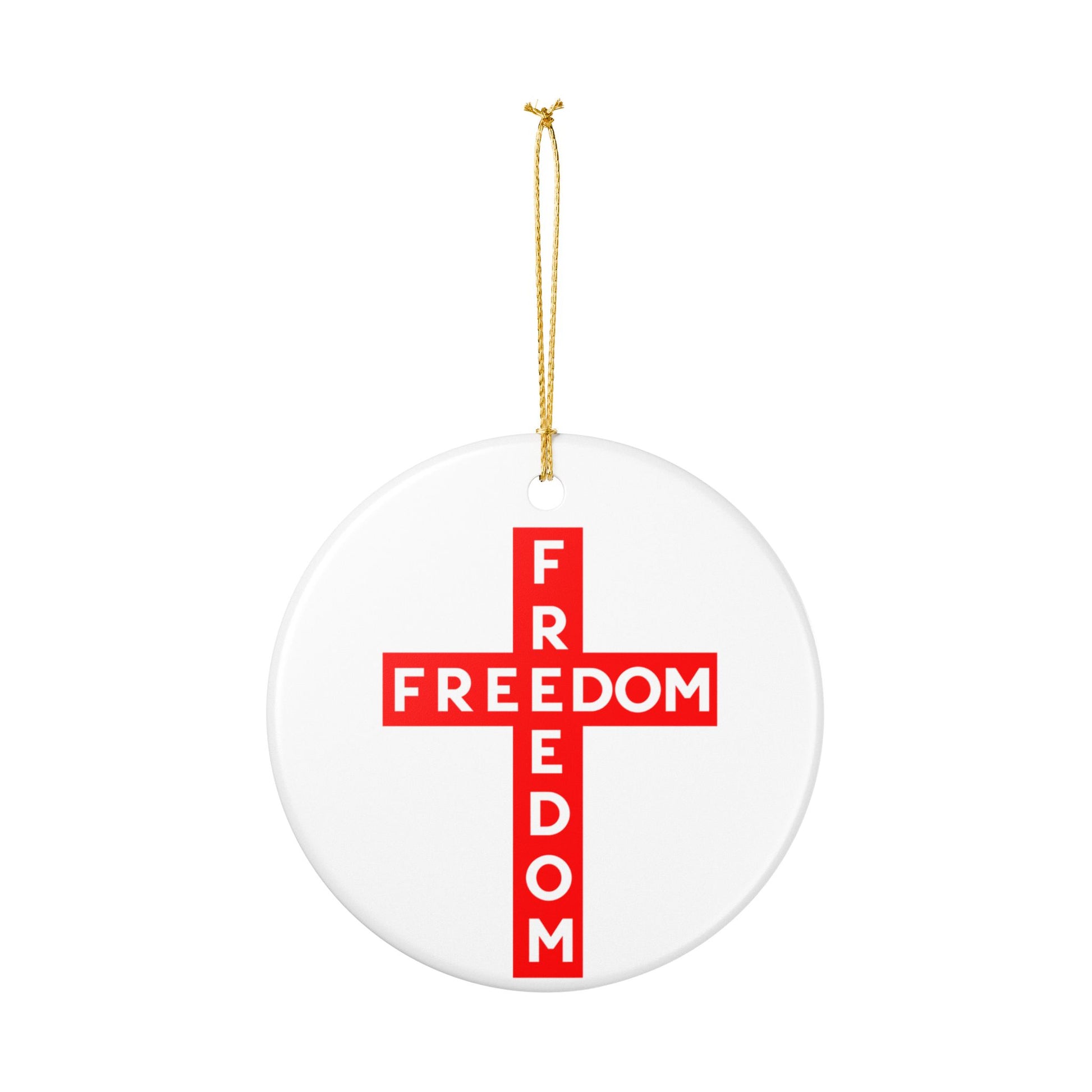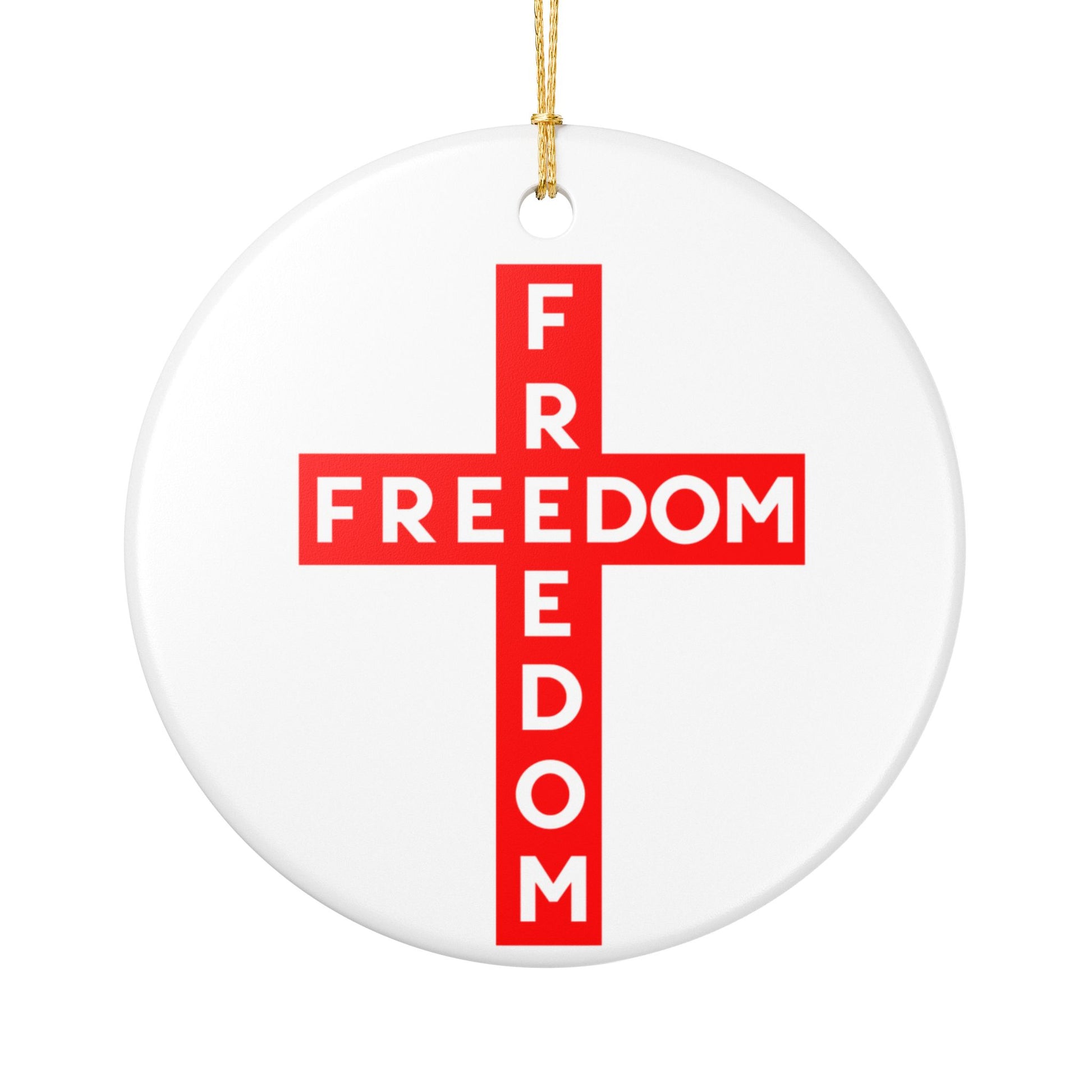 Red FREEDOM Cross Ceramic Ornament